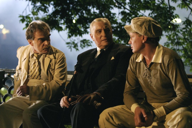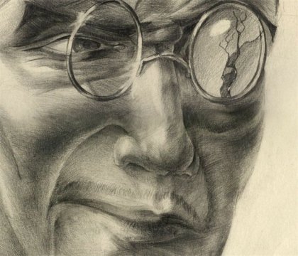 2. «…Росту был не маленького и не громадного, а просто высокого. Что касается зубов, то с левой стороны у него были платиновые коронки, а с правой – золотые. Он был в дорогом сером костюме, в заграничных, в цвет костюма, туфлях. Серый берет он лихо заломил на ухо, под мышкой нес трость с чёрным набалдашником в виде головы пуделя. По виду – лет сорока с лишним. Рот какой-то кривой. Выбрит гладко. Брюнет. Правый глаз чёрный, левый почему-то зеленый. Брови черные, но одна выше другой».